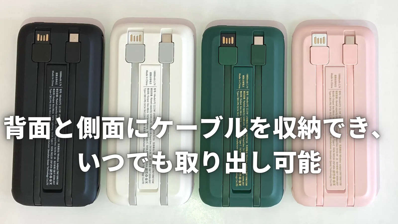 日々の絶望する人を少しでも減らしたいという思いから、この商品の輸入・販売に挑戦しました!これでもかというほど入出力ケーブルを搭載し、尚且つコンパクトに収納することができるモバイルバッテリーです。
