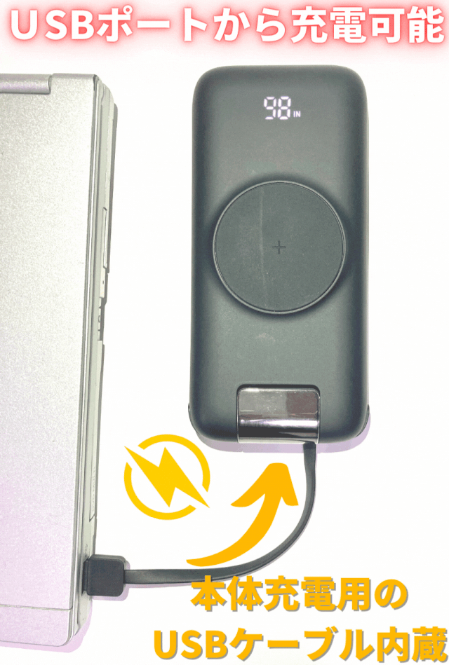 ことができます。この間はデバイス側への充電の方が優先され、モバイルバッテリーへの充電は遅くなります。