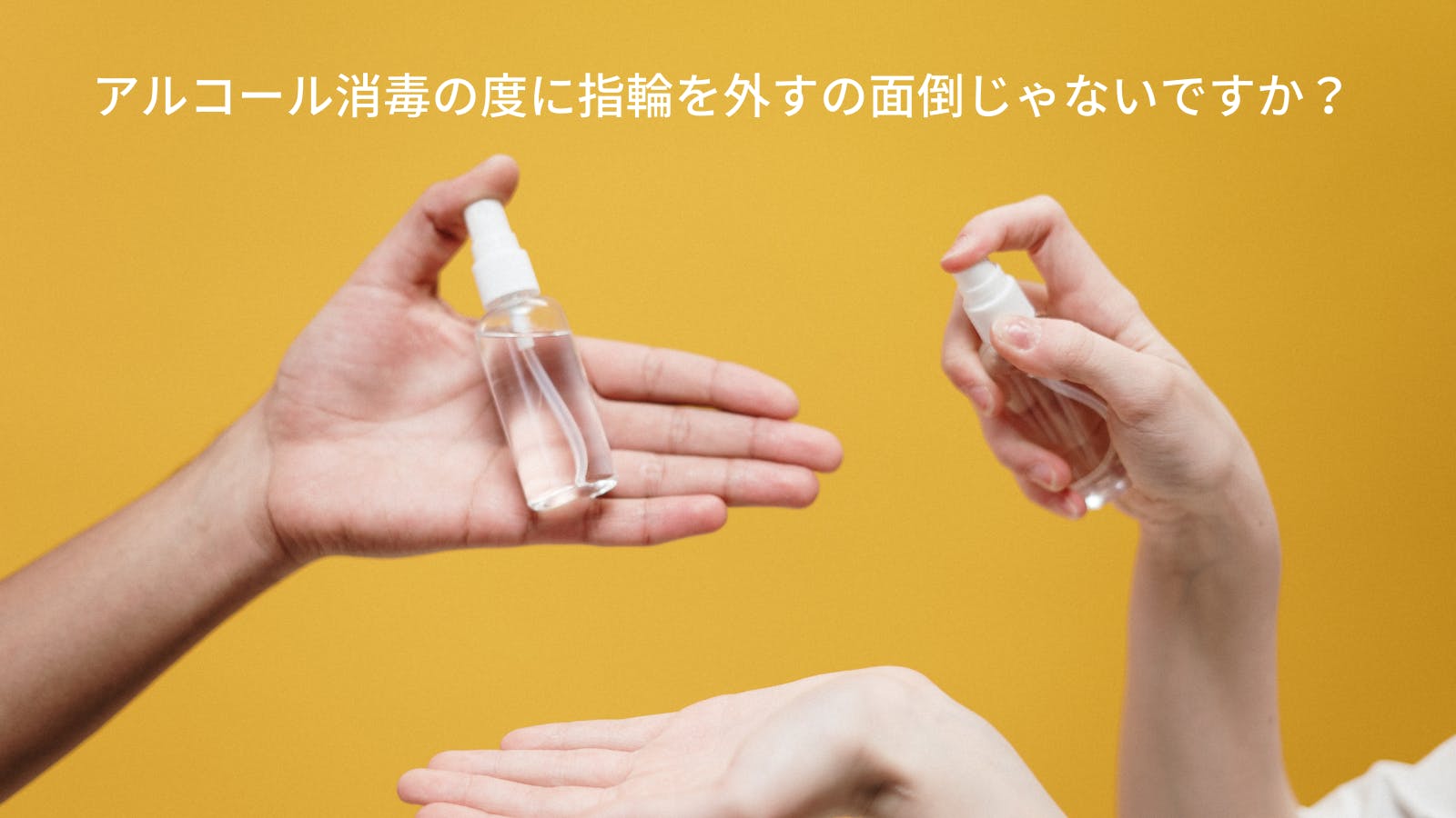 外出先で1日に何度もアルコール消毒をしなければいけない、手指の消毒を欠かせない毎日ですが、消毒の度に指輪を外すの面倒ですよね?