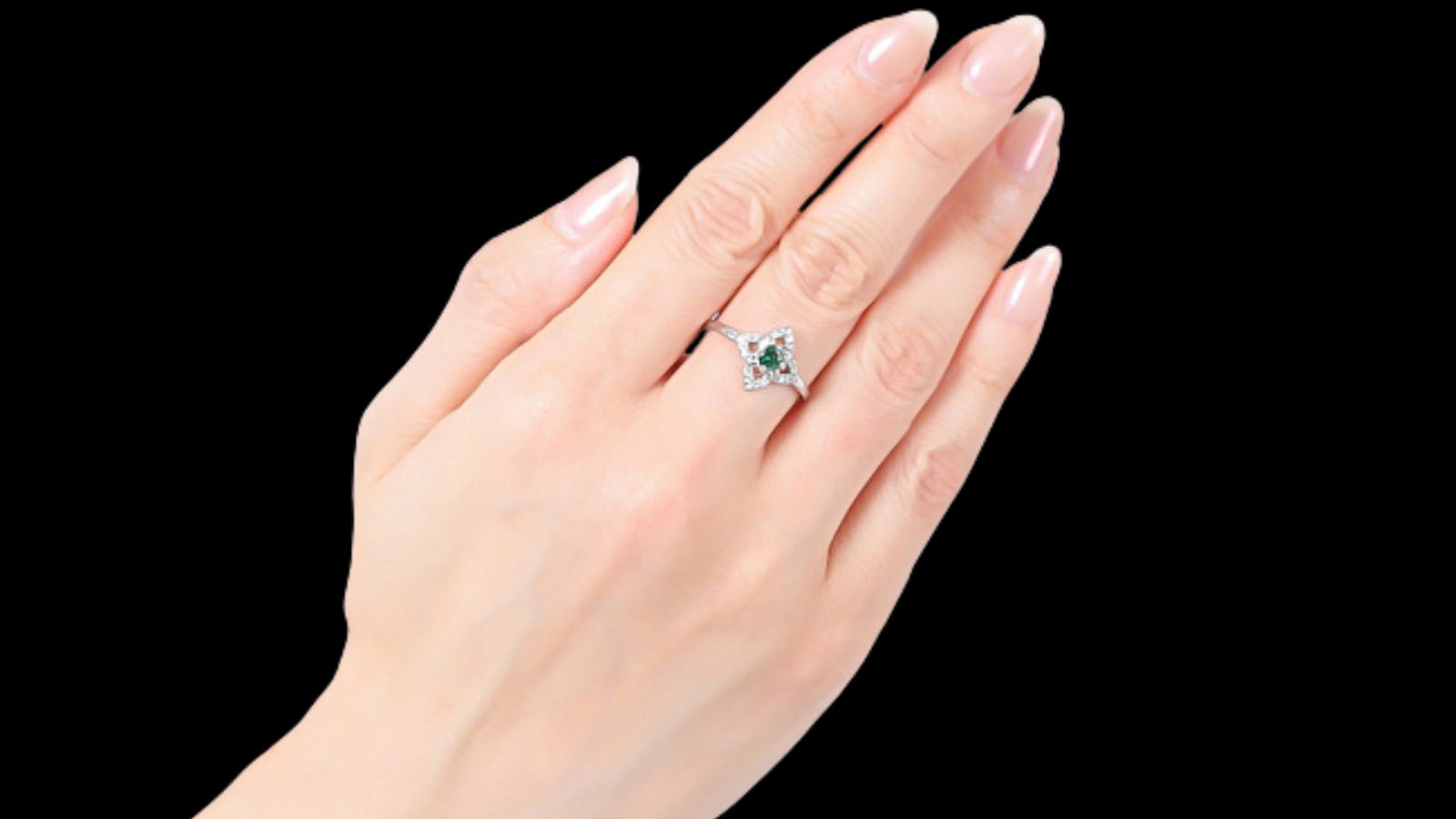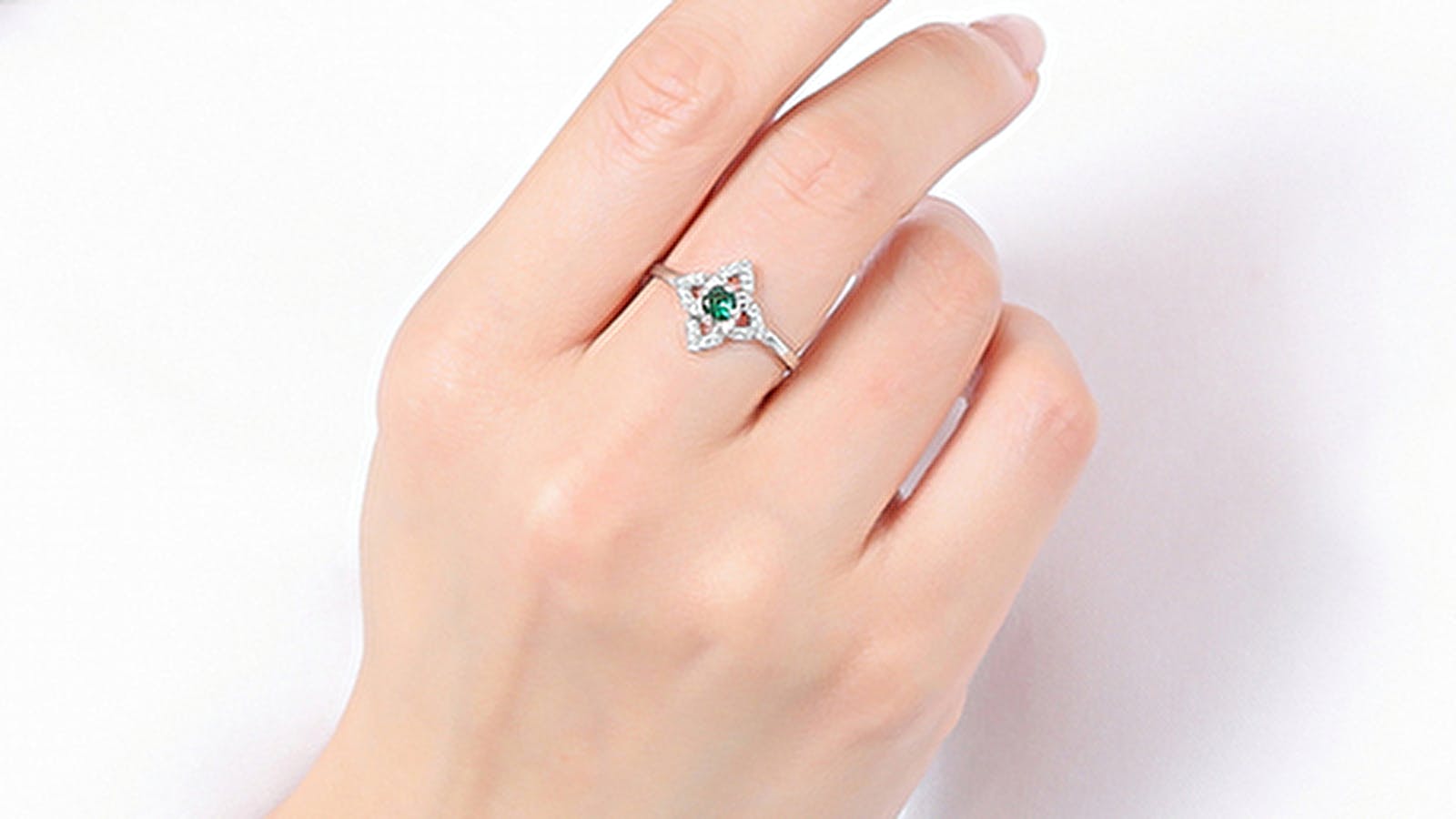 直径約4mmの深みある美しい濃いエメラルドグリーンジルコニアは、大人の印象を与えてくれる。