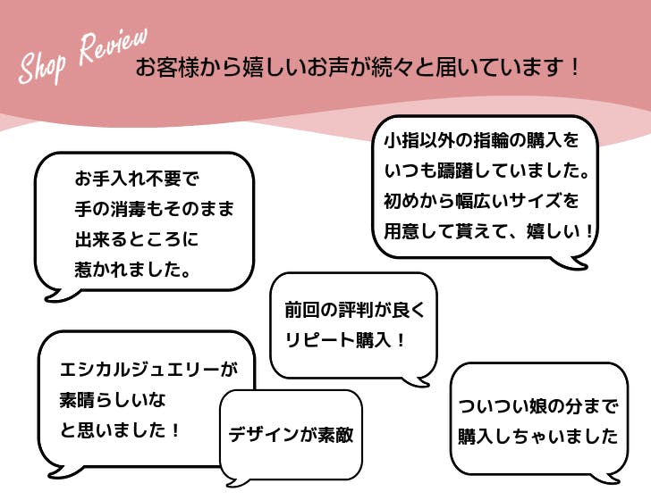 今までサイズの問題でリングを諦めていたお客様から、「本当は中指に着けたかったから嬉しい!」「やっと色々おしゃれが楽しめる!」とたくさんのお喜びの声を頂いております。