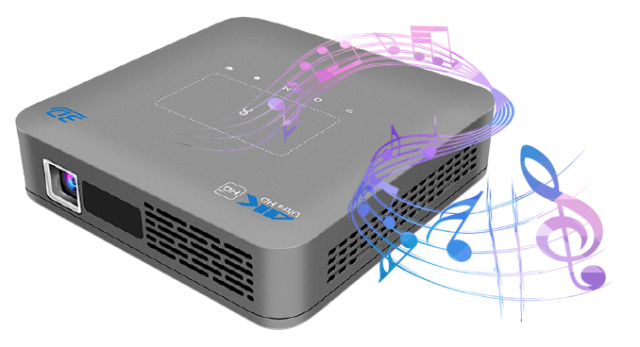 2つの4R3Wスピーカーが内蔵されているため、本体だけでも良音を楽しめます。より高機能な外付けのスピーカーに接続する場合は、より大迫力な映画を楽しめます。