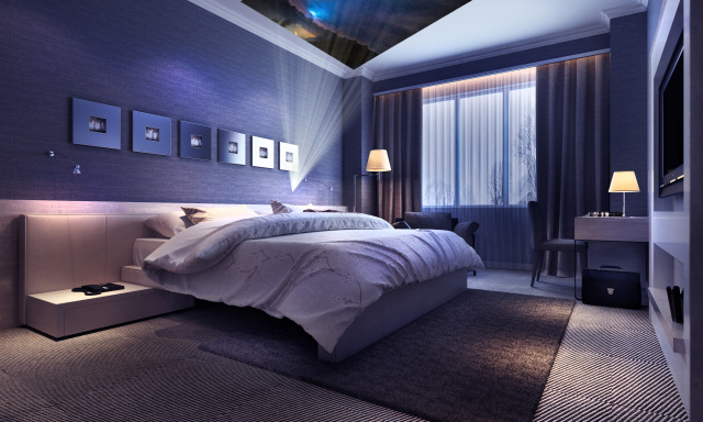 天井に投影して寝室で大画面スクリーンを楽しむこともできます!