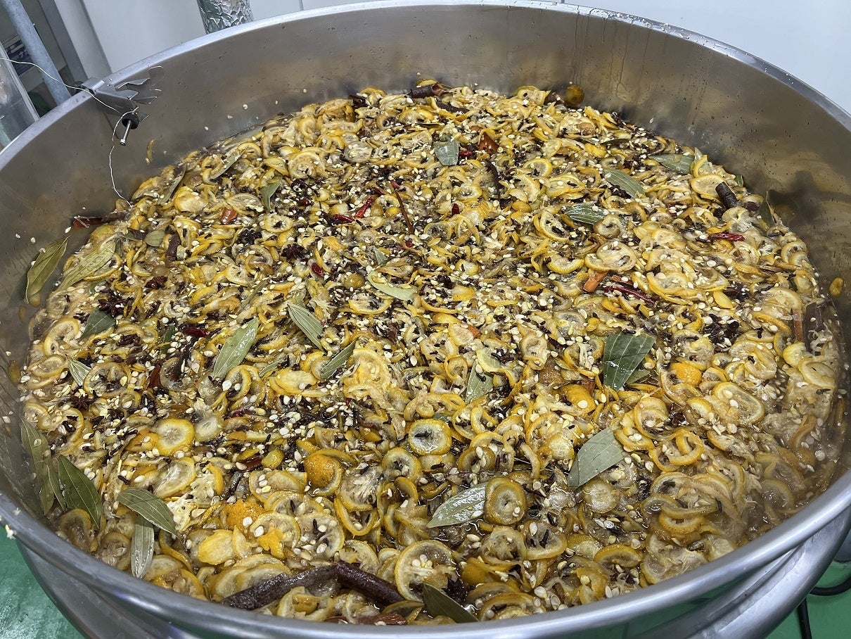 コーラシロップを製造の際に使用する大量すぎる「実生柚子の皮」と「10種のスパイス」。