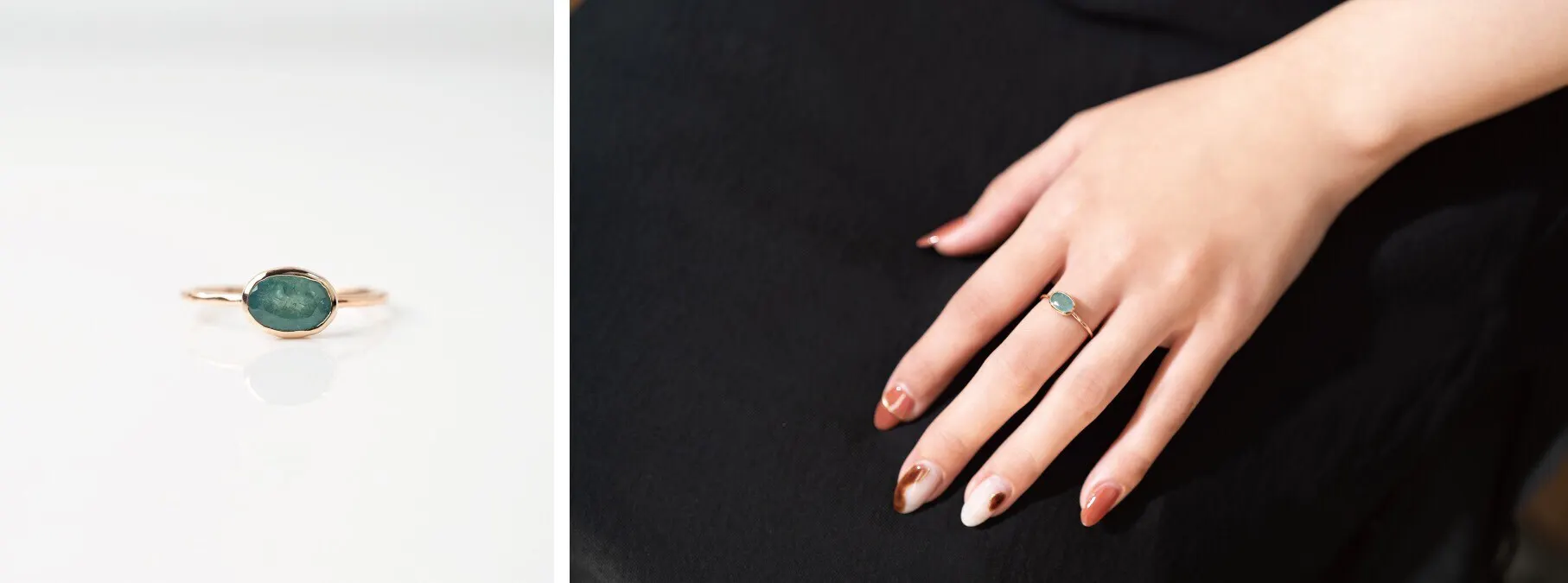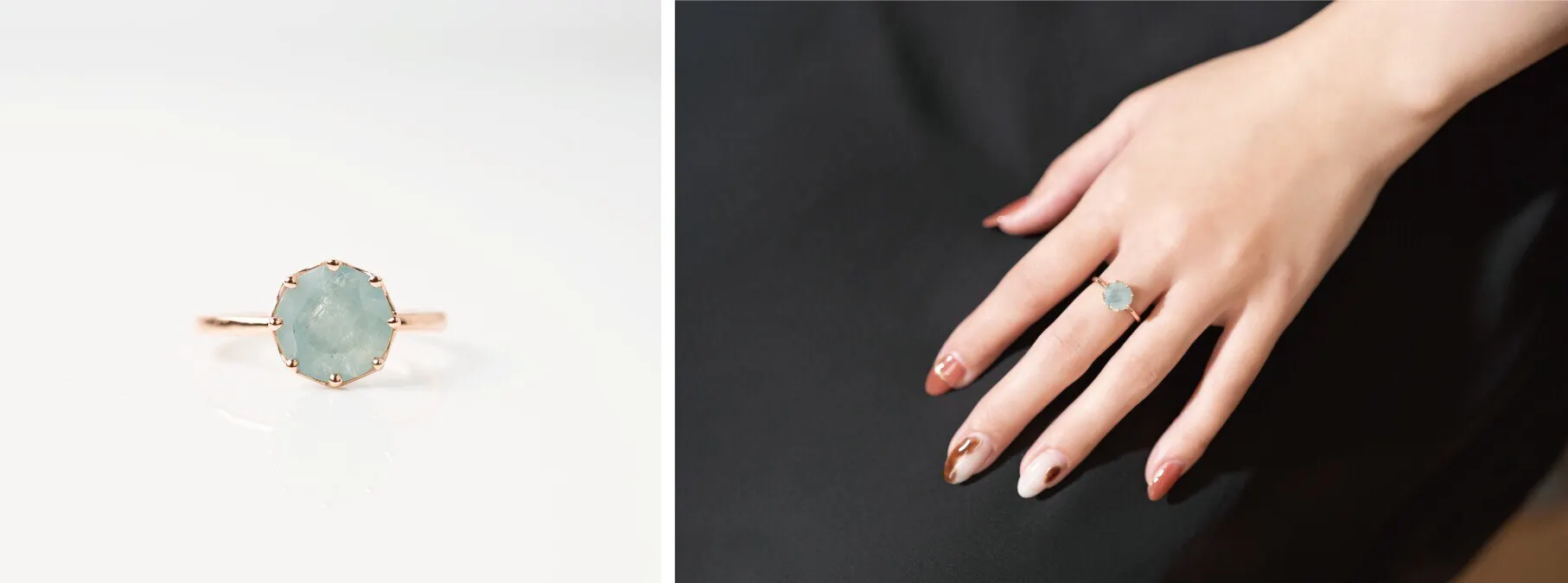 定番宝石に比べて、流通量もかなり少なく珍しい色なので、シンプルなデザインであっても他の人と被ってしまうことがありません。