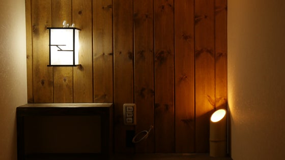 左上が手作りの行灯。右が修善寺=竹をイメージした間接照明です。
