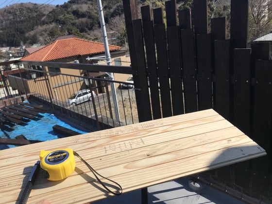 デザインと機能を向上させるために手前にも板を打ち付けるために、足りなくなった板を補充しました。