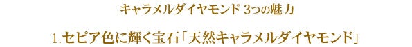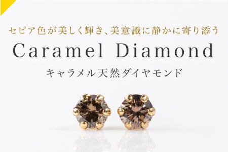 今回ジュエリーに仕立てた「天然キャラメルダイヤモンド」は、自然が生んだ美しいセピア色に輝く天然のダイヤモンドです。