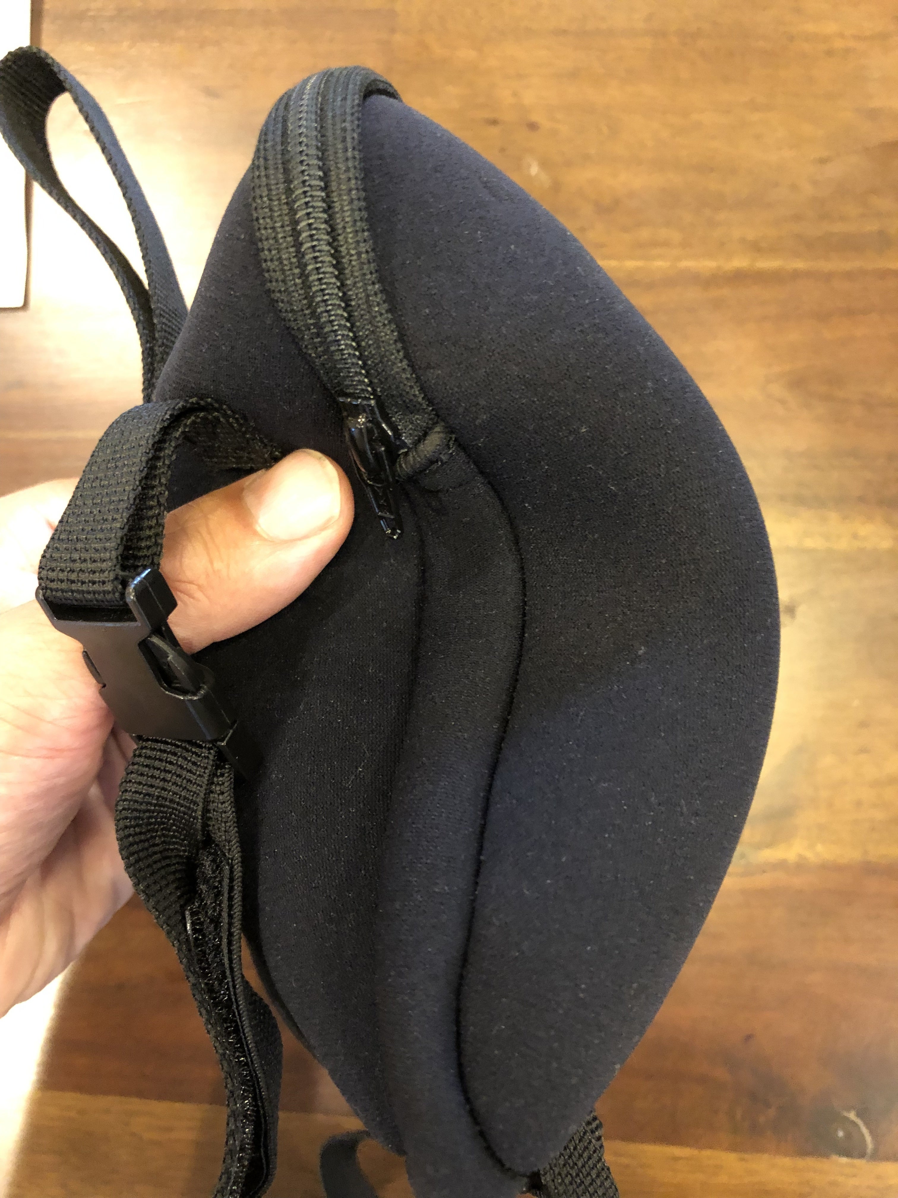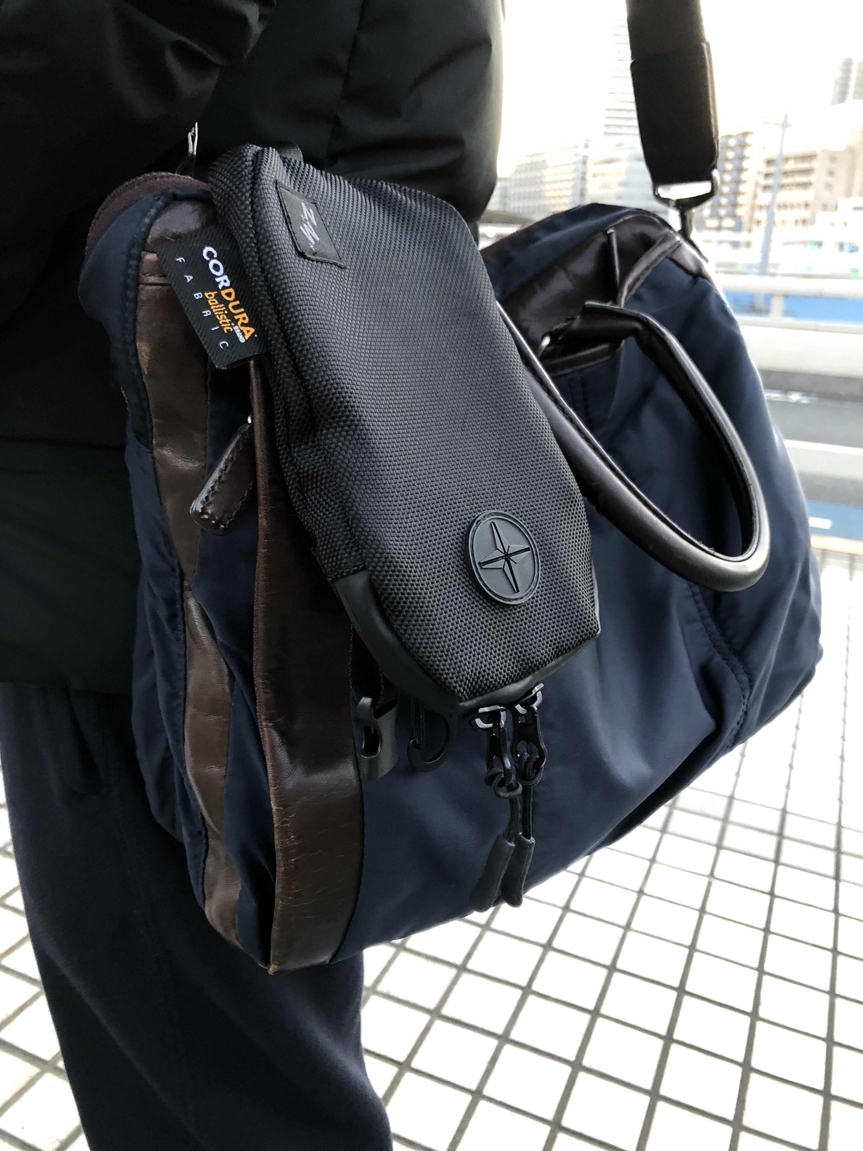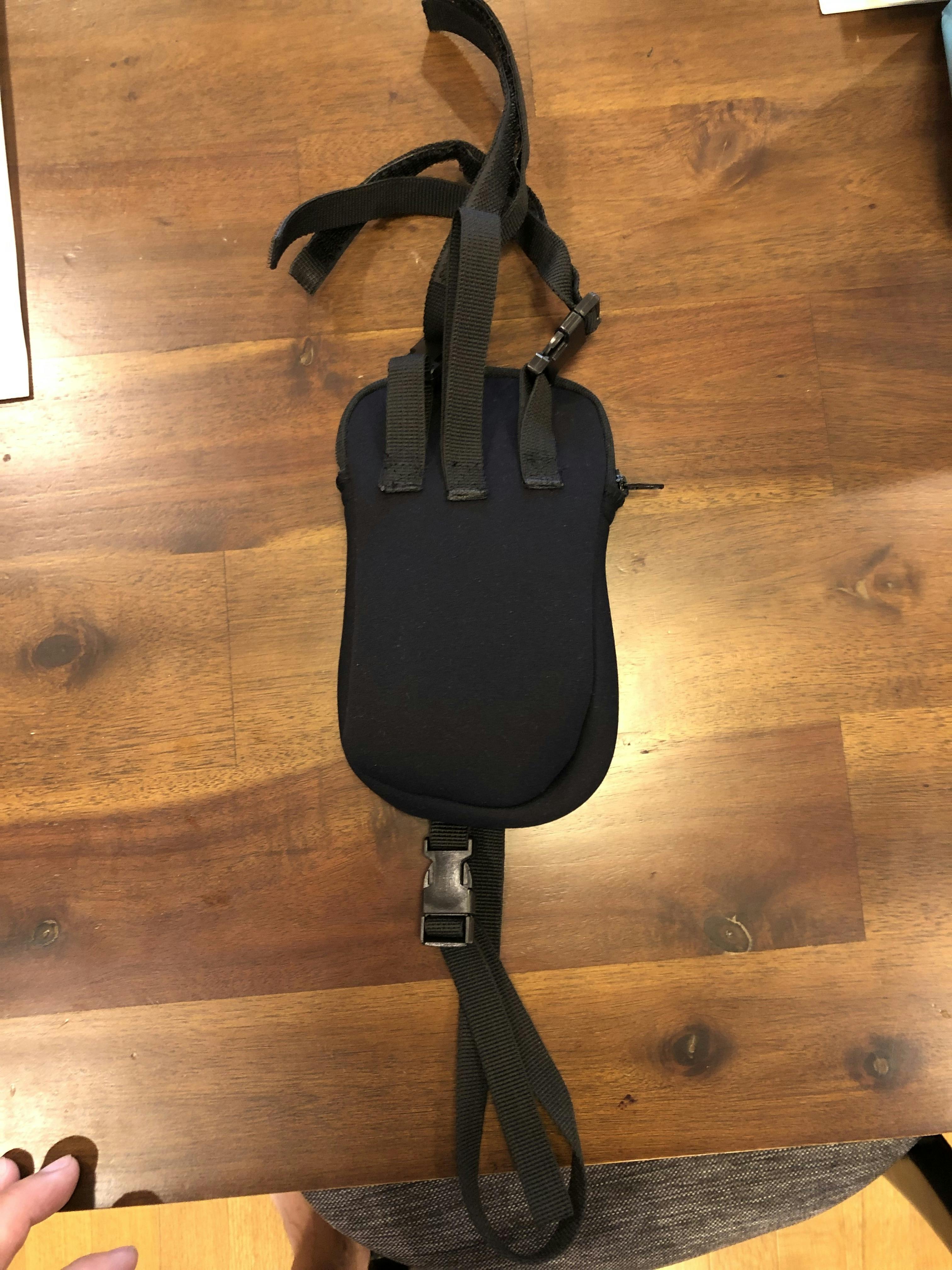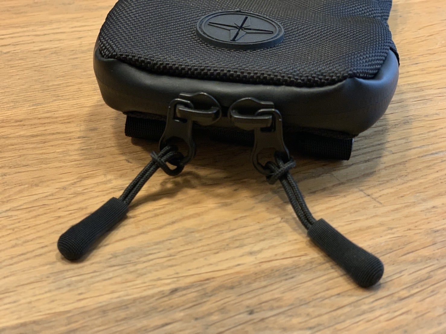 ハンドルに引っ掛け不安定さを固定するために三点で固定。自転車によっては横向きでの固定に。サングラス、小タオル、マスク、小銭などリュックを下ろさずに必要なものを素早く出し入れ。