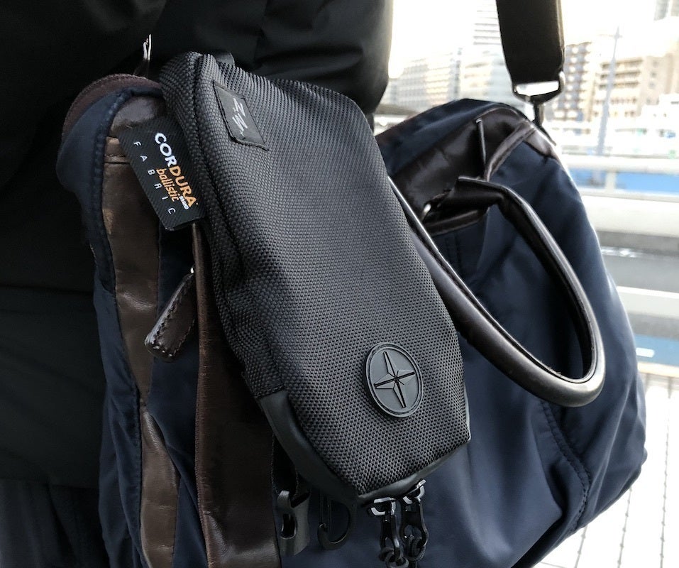 自転車とかバイクとかにもつけれて、充電器、サングラス、鍵、小タオル、マスク、タバコやら