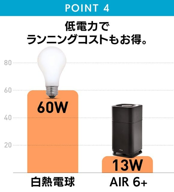 【AIR6+】はフィルター交換不要なので、維持コストは電気代のみ。