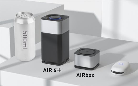【AIR6+】は500ml缶ほどのコンパクトサイズながら、宇宙ステーション採用の光触媒酸化反応技術を駆使して、お部屋を超強力に浄化する空気清浄機。