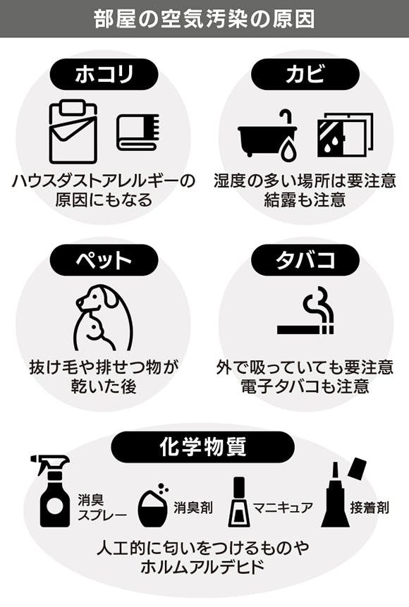 お部屋の空気を汚してしまう原因はたくさんありますが、日常生活から変えて対策するのはとっても難しいこと。