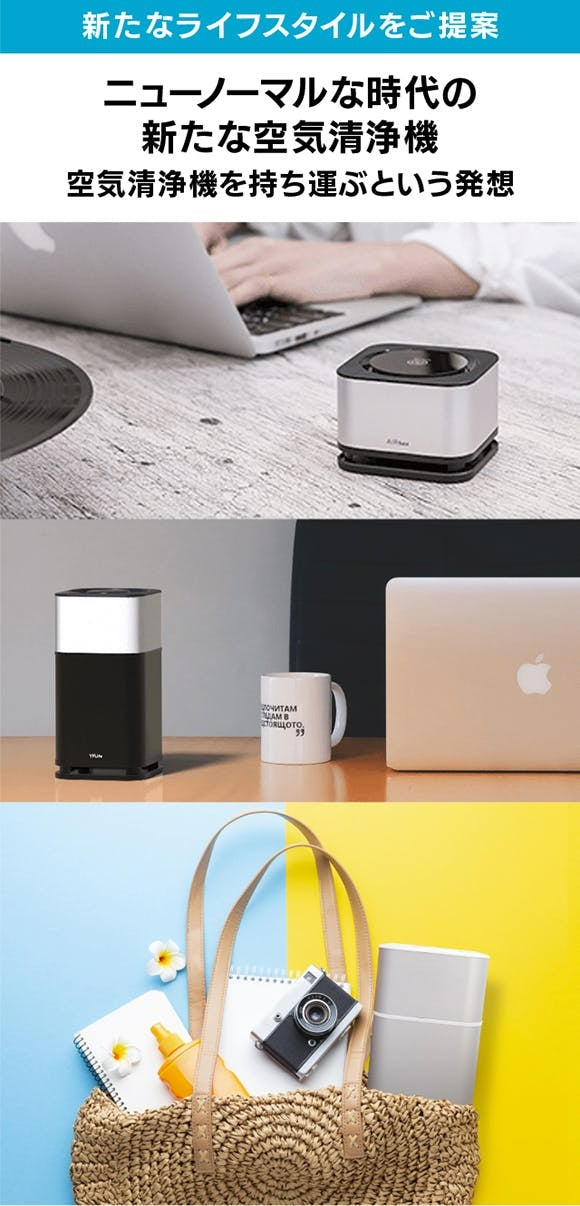 私たちは、「空気清浄機を持ち運ぶ」という新たなライフスタイルをご提案したいという想いから、小型かつ高性能な空気清浄機をご紹介しております。