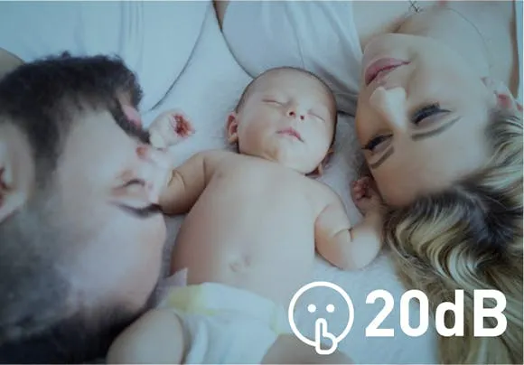 音が気になる夜は、サイレントモードにすればその作動音はたったの20dB(デシベル)。