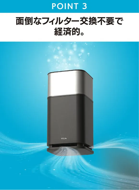YFLifeの空気清浄機は、宇宙ステーションでも注目されている光触媒技術を活用し、フィルター交換も不要、エコでコンパクトな空気清浄機です。
