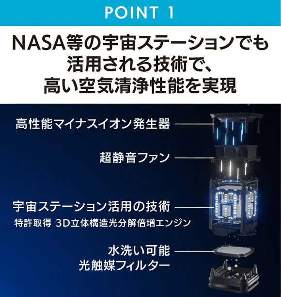 ・国際宇宙ステーションでも活用・注目される光触媒技術で、高い空気清浄性能を実現