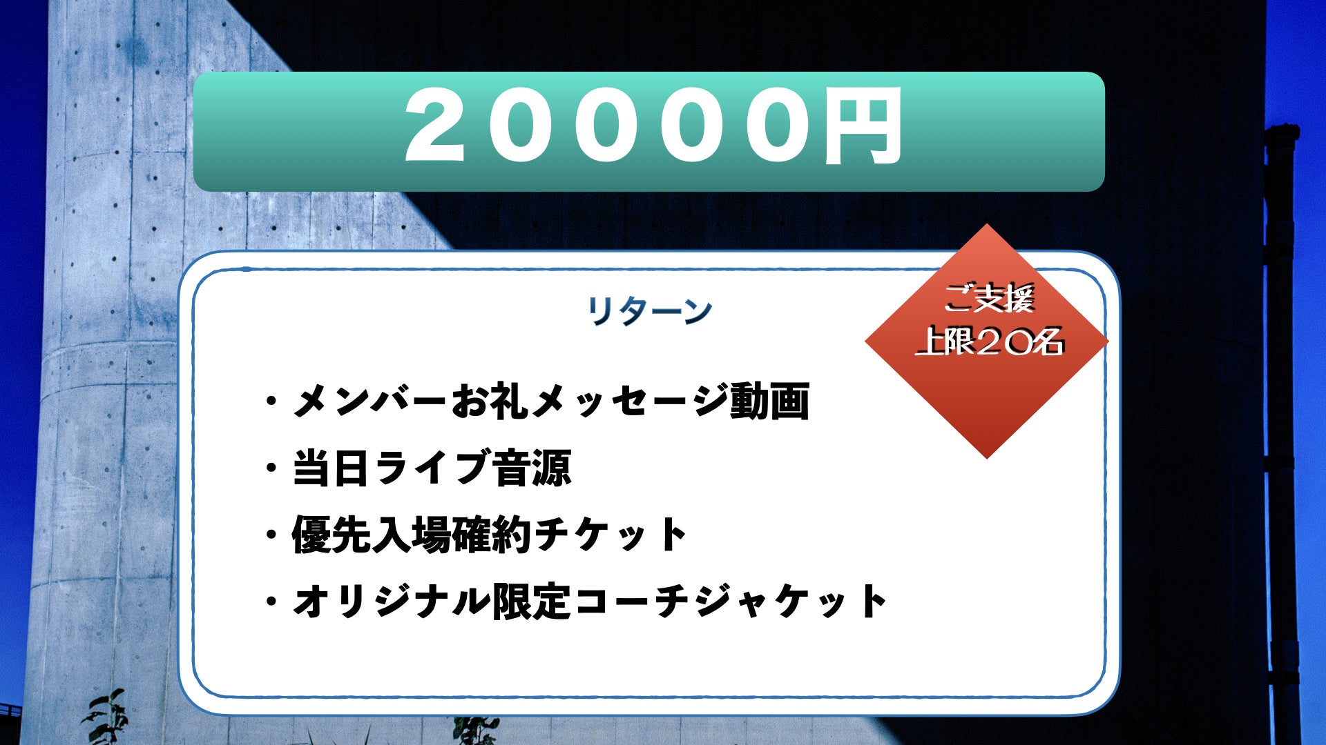 僕らへの温かい応援のお気持ちと共に支援をしてくださった皆さんには、ライブ当日の優先入場以外にもさまざまなリターンをご用意いたします。