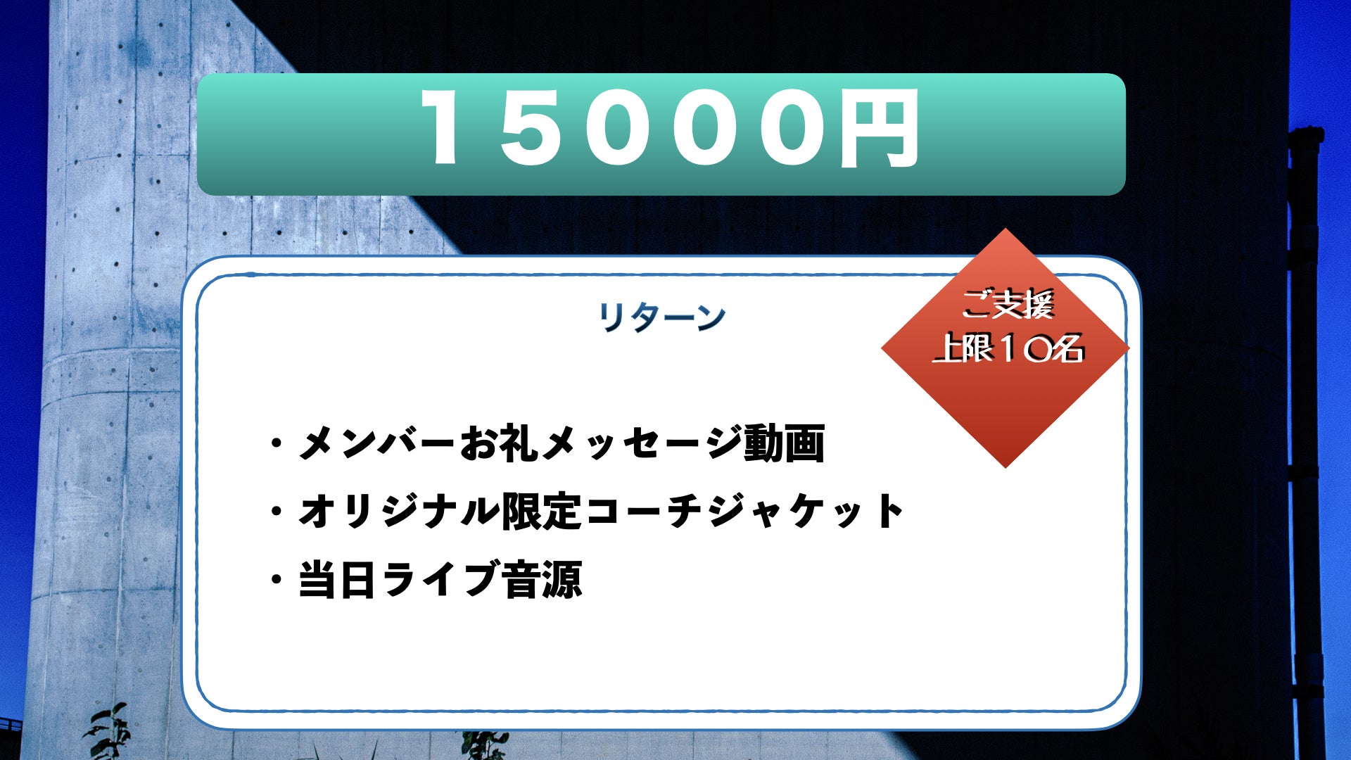 この支援プランには当日のライブ入場チケットは付属しません。