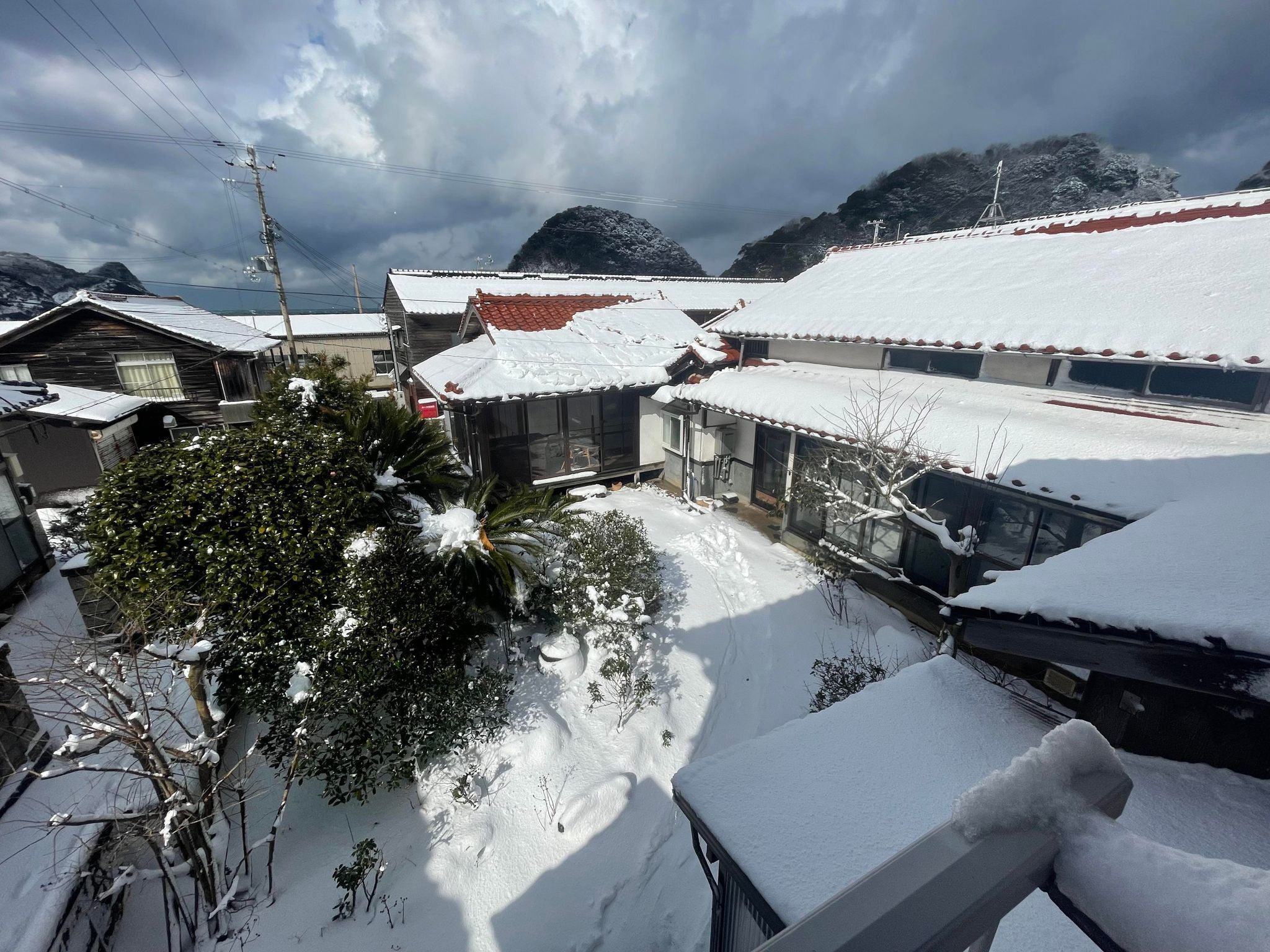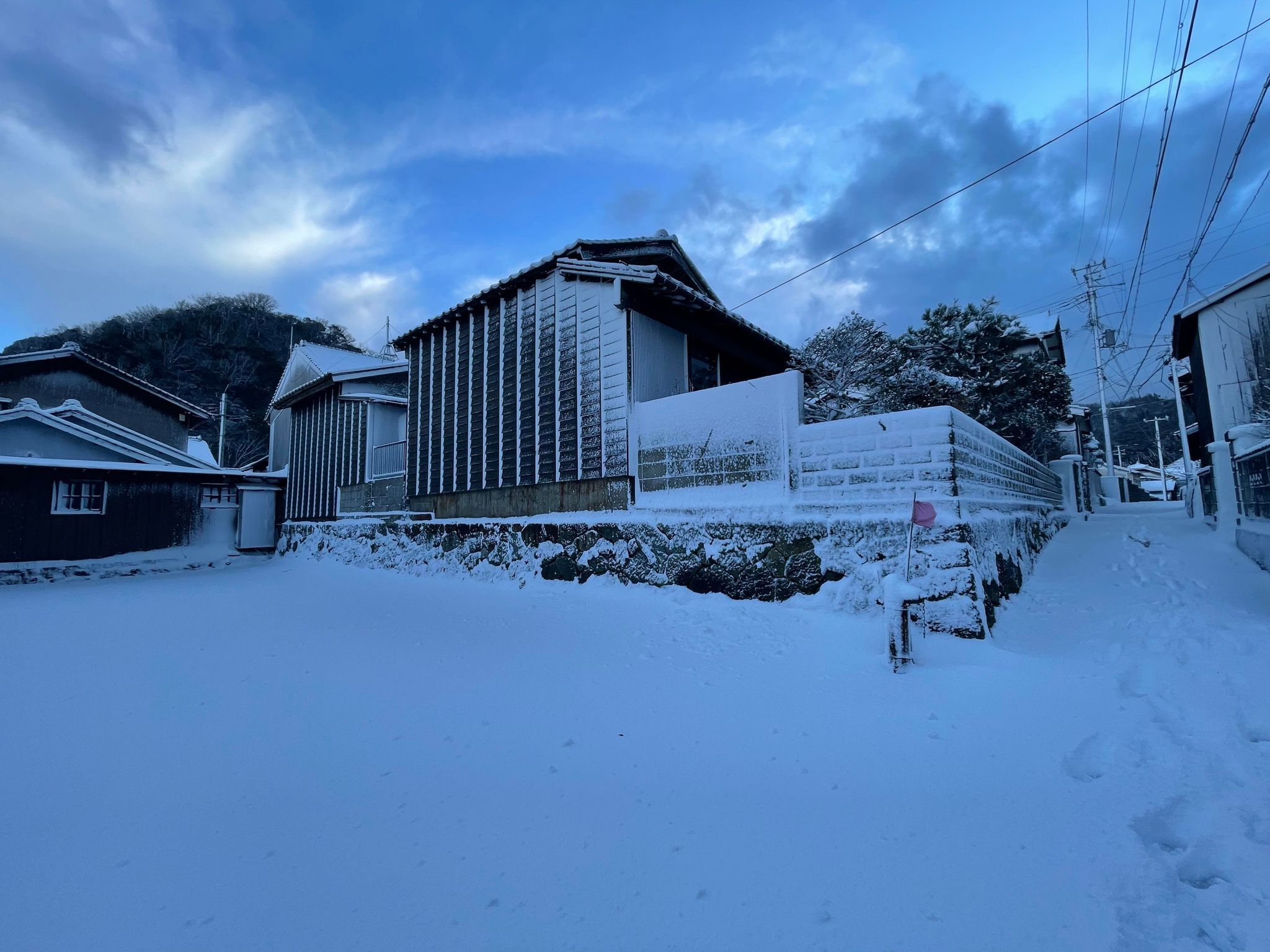 さて、話は変わりまして、昨日から日本海側の寒波がやってきて、「通常は海風でそんなに積もることがない」とお聞きしていた居組が、今朝はしっかり積もっていました笑