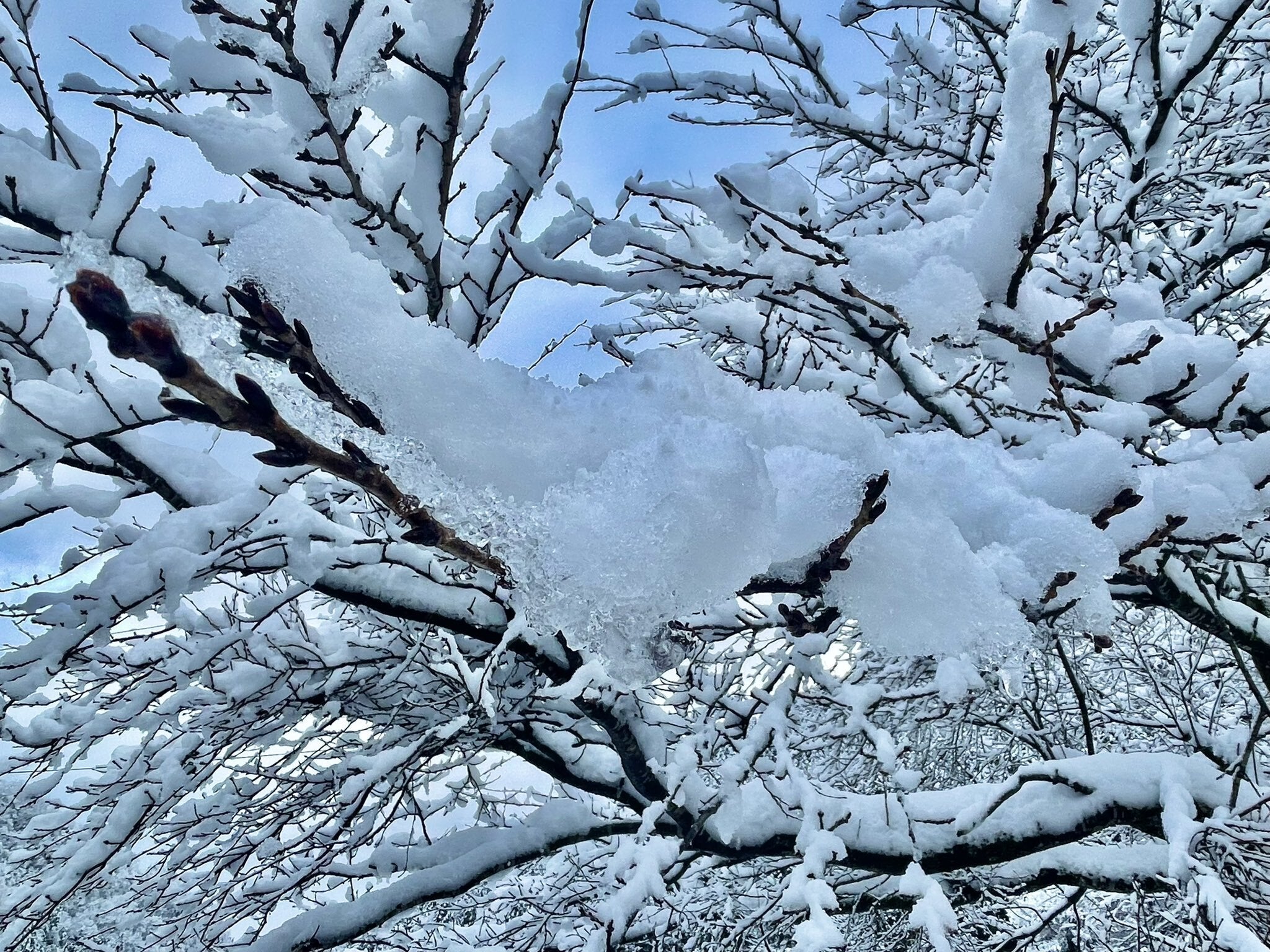 雪の下では桜のつぼみが膨らみはじめています