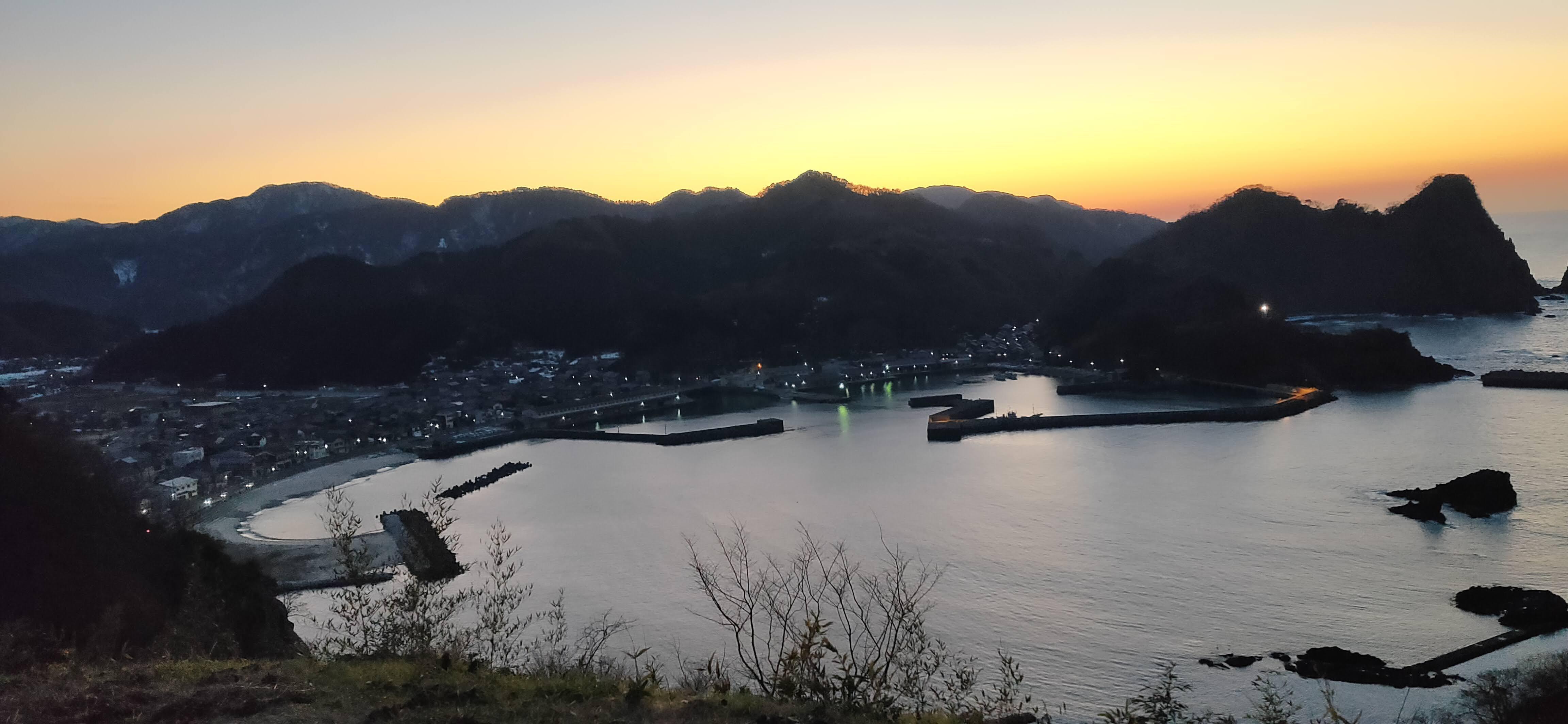 夕暮れの諸寄漁港(城山園地より撮影)