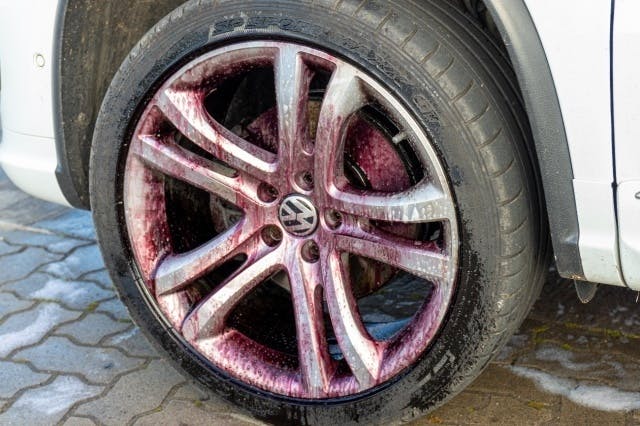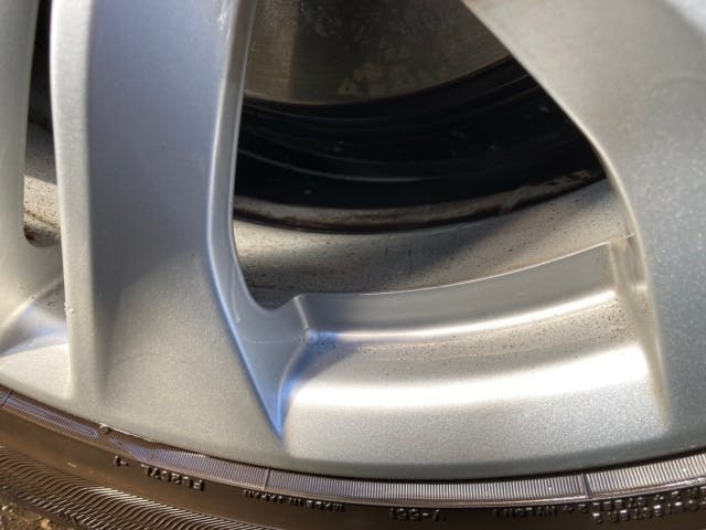 ブレーキダストは車のブレーキを踏むごとに、タイヤの内側に設置されているスチール製のディスクローターと樹脂と鉄粉を固めたブレーキパッドの間で摩擦が起こり、そこで削られた微粉末がホイールに付着します。