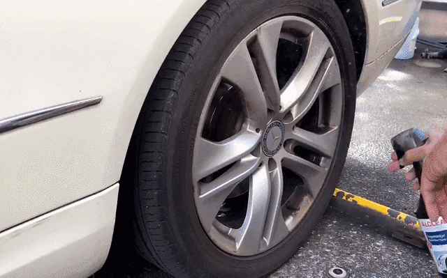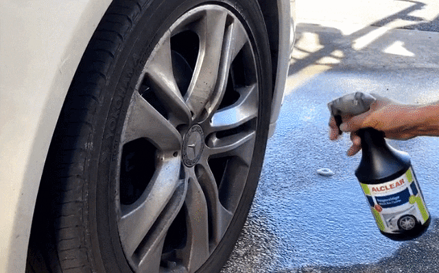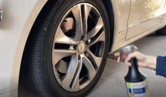 本システムのリムスプレーはタイヤのホイールに吹きかけ、約2分ほど待つだけで表面にこびりついたブレーキダストを浮かび上がらせる驚異の洗浄力を誇ります。