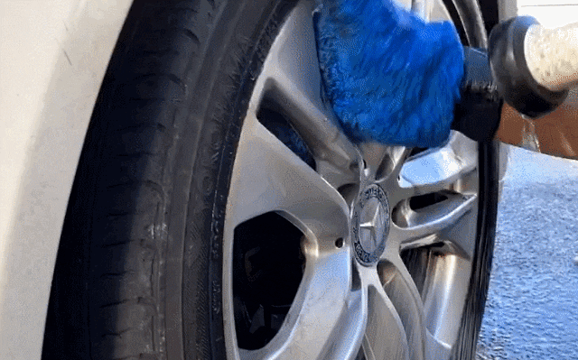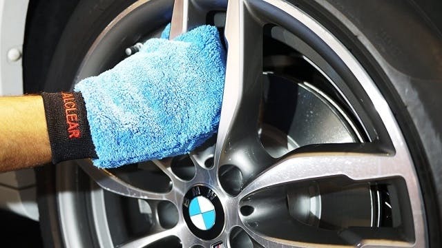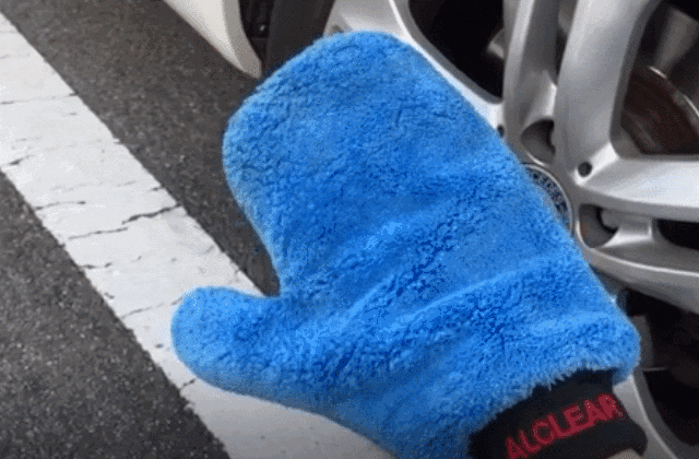 仕上げに手袋型のウルトラマイクロファイバーミットでホイールを磨くとピカピカに。