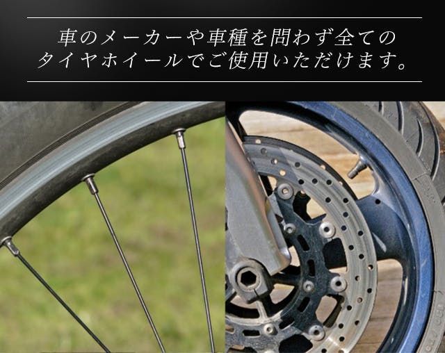 【ミット&リムスプレー】は車やバイクのメーカーや車種を問わず全てのタイヤホイールでご使用いただけます。