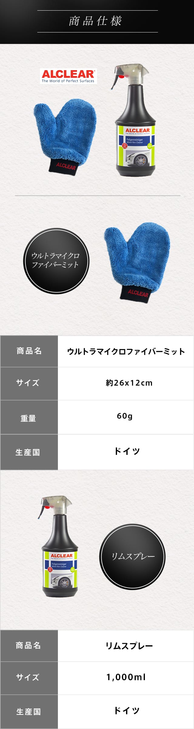 →リムクリーナーはホイールのみご使用ください。 ALCLEARマイクロファイバーミットは他の用途にも使用できます。