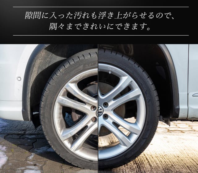 愛車のホイールに付いたブレーキダストのしつこい汚れも楽々取れ、ピカピカのホイールに甦ります。