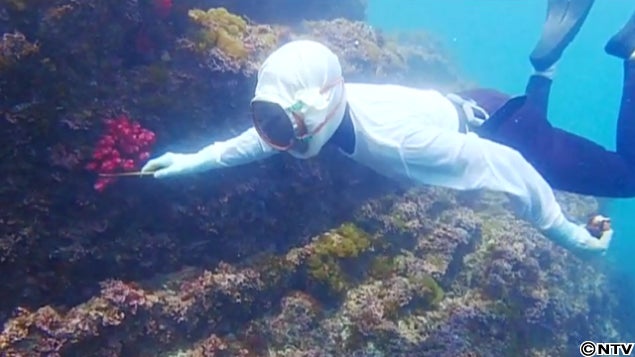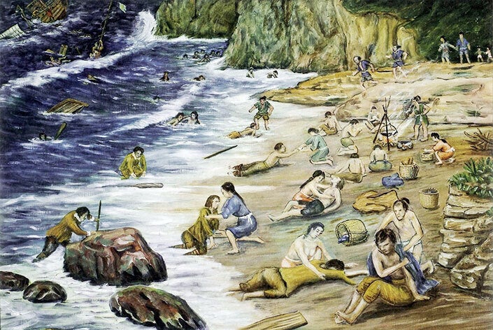 海に放り出された船員を、泳ぎが得意な海女さんが海に飛び込み助けました。