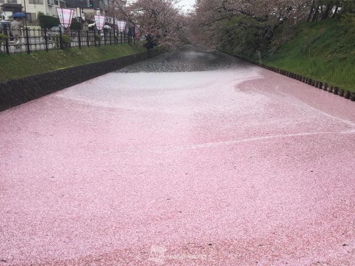 たくさんの花弁が水の上を帯状に流れる姿を花筏と言います。