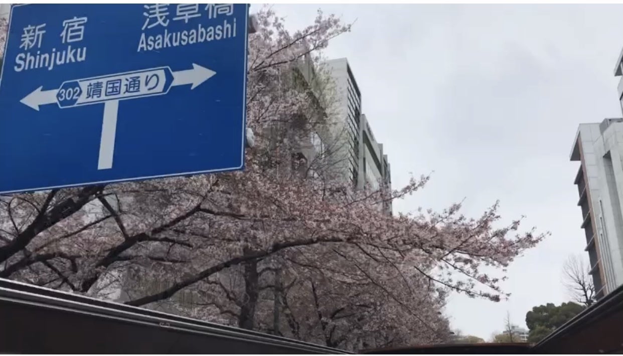 屋根がないバスでの、お花見バス体験です。