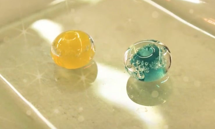 そして、いよいよ出来上がったトンボ玉でかんざしを作ります。