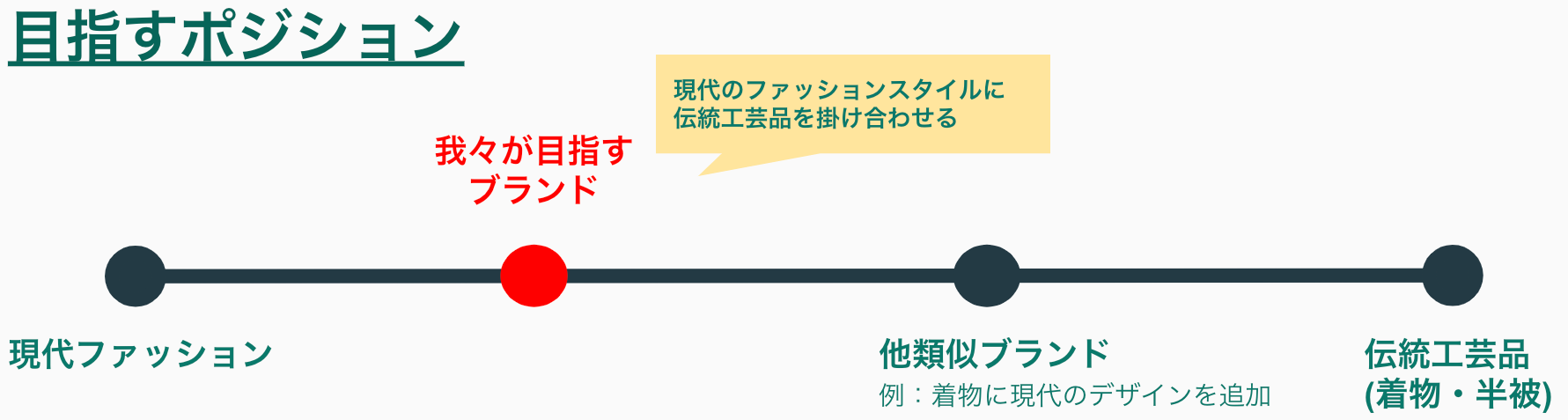 私たちのブランドの認知が上がれば、ファッション以外の我々だけでは消費を増やせないジャンルでも、このブランドは間接的・結果的に伝統工芸品の消費を上げられると推測しました。