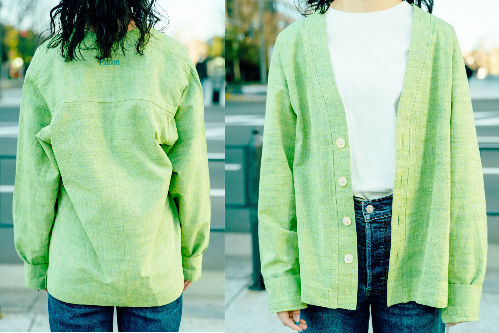 今回私たちはカジュアルストリートファッションということで、シャツとカーディガンを製作いたしました。