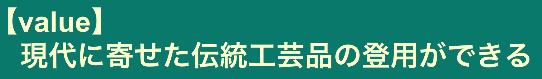 私たちは上記のポジションで、伝統工芸品を固定の使い方ではなく、現代に寄せた文化の登用ができるという認識を広め、多くの人に持って欲しいと考えています。