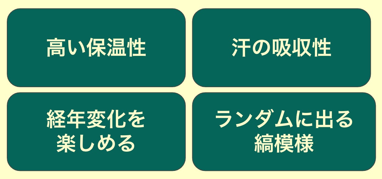 まず機能性に関しては「高い保温性」と「汗の吸収性」により、1年を通してお使いいただける仕様となっています!