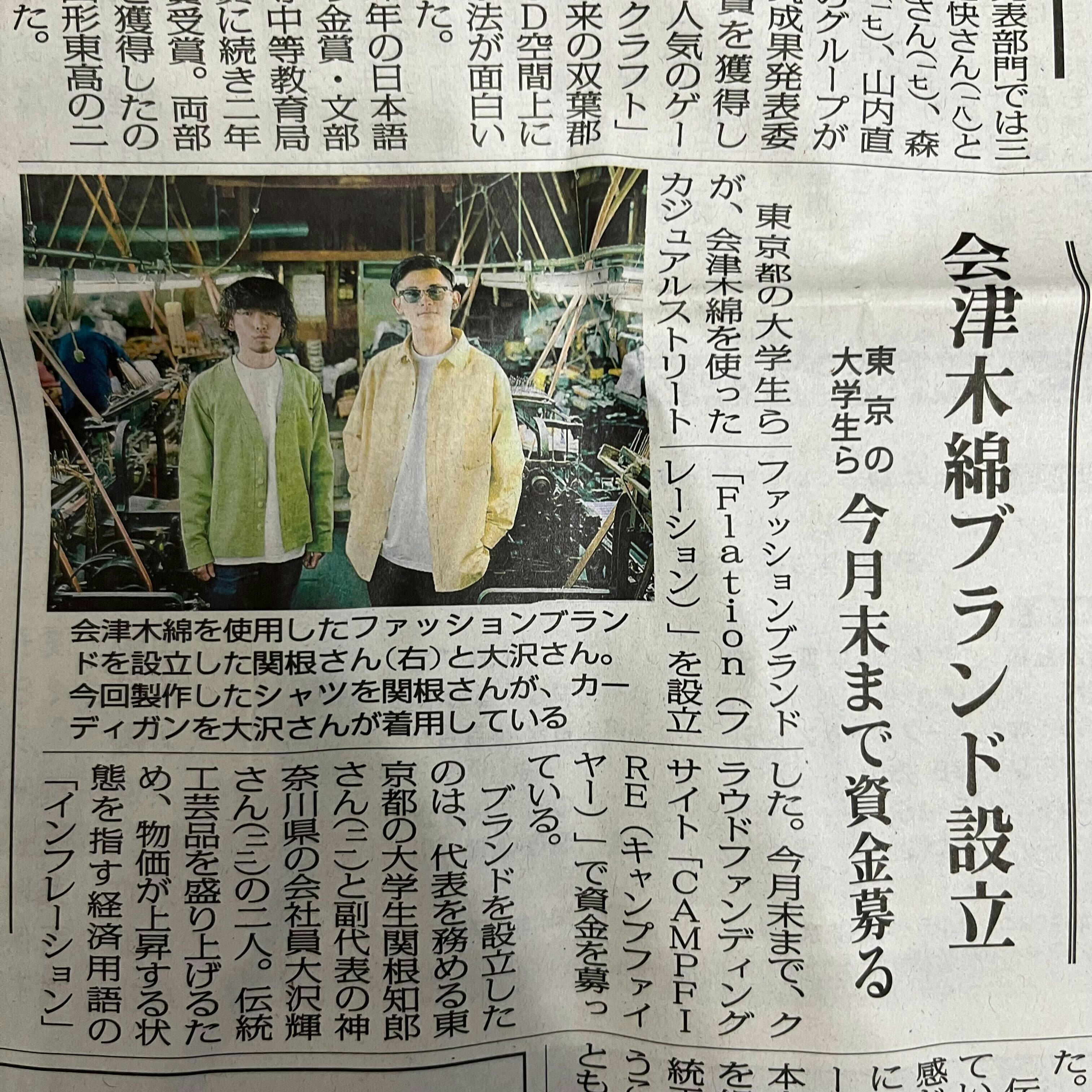 2022/2/11の福島民報新聞の朝刊でFlationについての記事が掲載されました!!