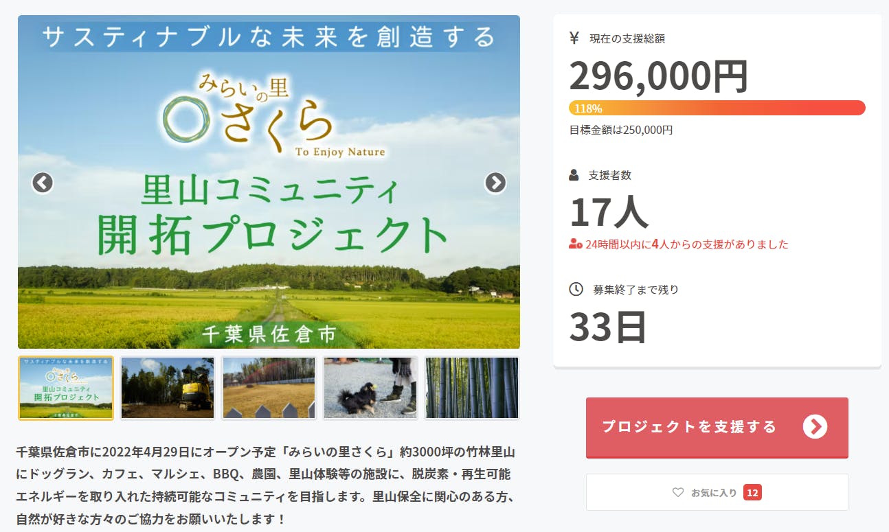 公開初日から17名の皆さまからのご支援いただき、