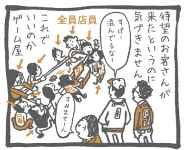 焼きそばを食べながらテキトーな接客をする「焼きそば店長」、ゲーム用の車が動くのか確認しようとしただけなのに、楽しくなってしまった「ゲーム屋」、「雇ってあげるよ」とどんどん人を雇ったあげく、給料を払わずにいなくなる「起業家」など、おとなの目からみるとびっくりするようなことがいっぱい。