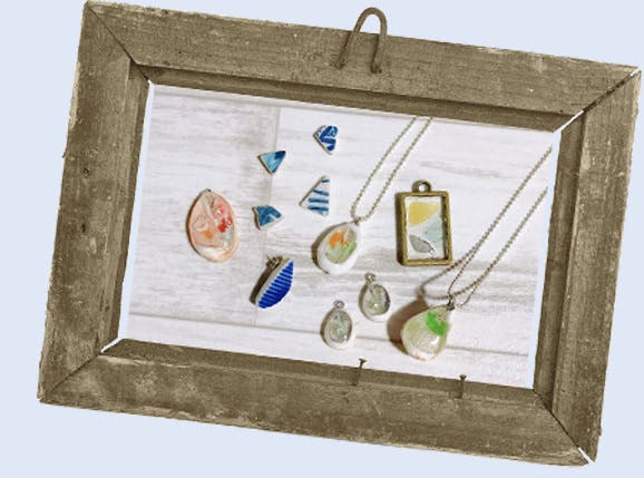 今年度は日本財団「海と日本PROJECT」の推進パートナーとして海ごみのアップサイクル作品開発に取り組んでいます。 SDGs14 海の豊かさを守ろうの活動としてビーチクリーンを積極的に行っているe.labは、色とりどりのゴミも見方を変えたらひとつの素材であると考え、「うみのたからもの」としてマイクロプラスチックやシーグラス等を拾い集めてレジンや空き瓶に閉じ込めて海を表現した小さな作品をつくるアップサイクル活動を行っています。