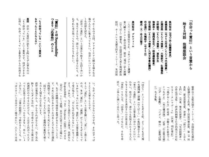 ●座談会「出会った責任」という言葉から始まる対話(NPO法人抱樸 奥田知志/他)