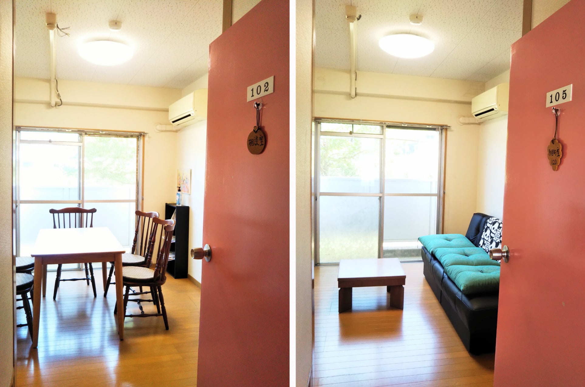 相談室 (写真左) や 多目的室 (右) があります。