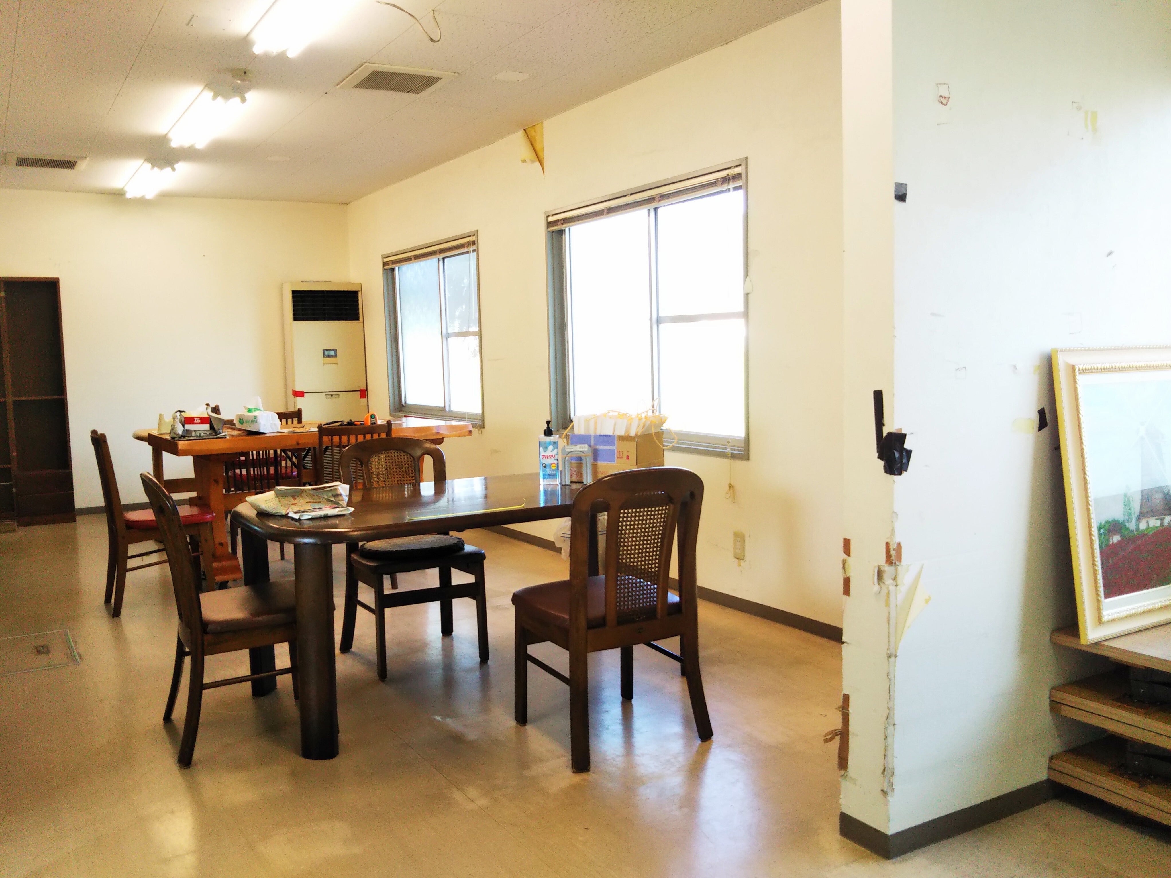 長い廊下を通り、 奥に作業室があります。この部屋も、 テーブルや椅子はそろいましたが、
