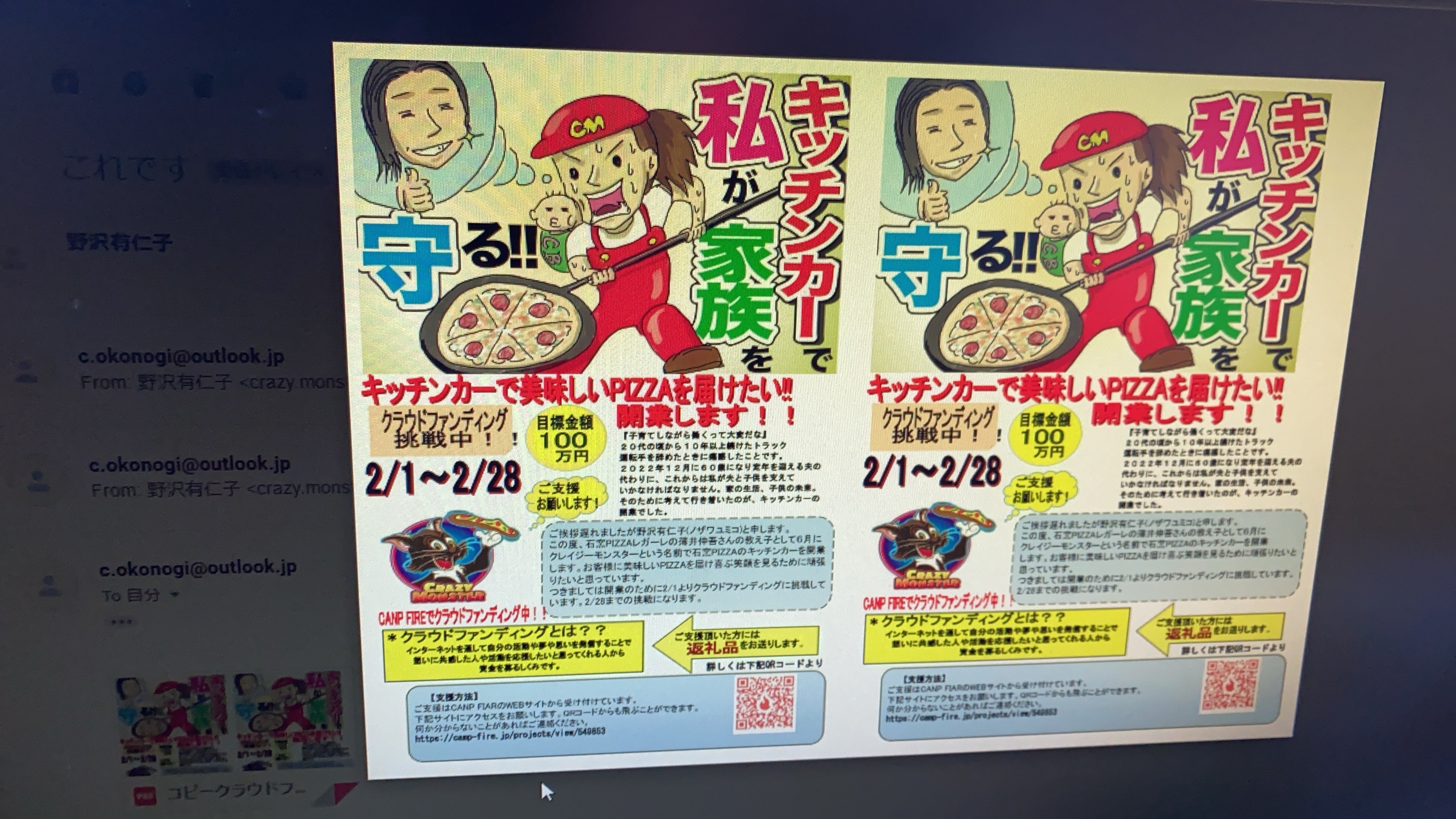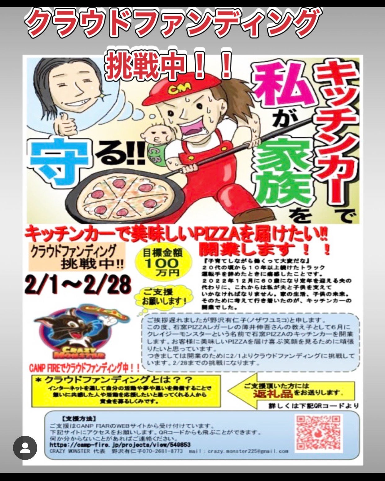 皆さんこんばんわ。連日の暑さで絶対に死んでますよね??ε=ε=ε=ε=ε=ε=┌(; ̄◇ ̄)┘自分は体調崩しています。子供保育園に行く=病気をもらう=自分に移る(重症)笑精神病みますよ!!これ。wwwで報告が1つあります。やっとトラックが見つかりました〜。これで少し前に前進オープンも少しずつ見えて来ました。随時更新していきます。Instagramもcrazy_monster225で更新していきます。では開業に向けて準備に走ります。皆さん引き続きお待ちください。いつも応援していただきありがとうございます。画像キャプション