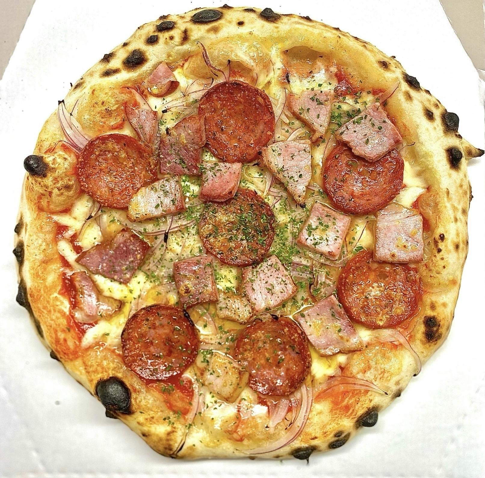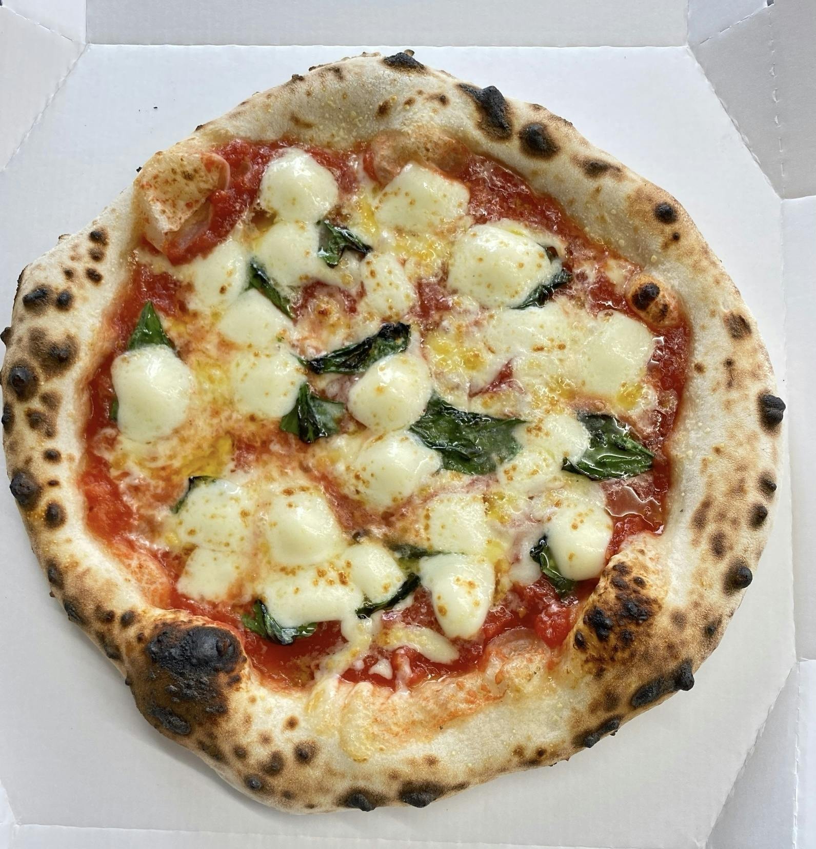 ご注文を頂いてから2日間、低温発酵させた自家製生地をのばし、トッピングして大谷石で造った石窯をペレット燃料を使い500℃以上の高温に温め1枚90秒で焼き上げ外はサクっと中はモッチリ仕上げます。