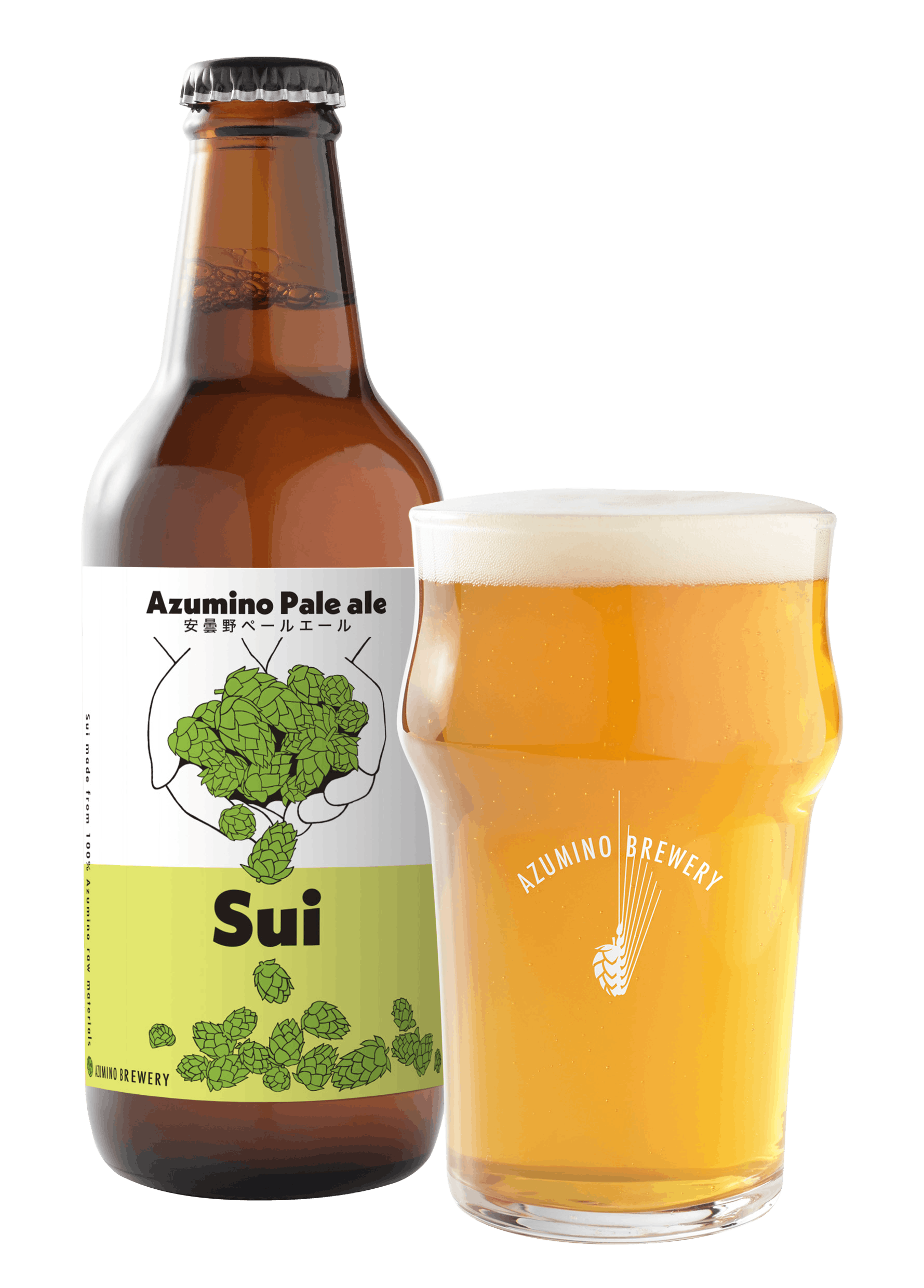 安曇野の「水」と「大麦」、「ホップ」を活用した日本初の原料100%安曇野エールです。